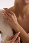 925 ayar gümüş üzerine altın kaplama ile hazırlanan bu özel parça, bileğinizde neredeyse görünmeyecek kadar hafif; ama etkisi bir o kadar büyüleyici.