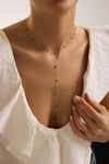 Derin lacivert ve göz alıcı aqua marin zirkon taşlarla tasarlanmış Midnight Flow kolye, boynunuzda zarif bir akış yaratıyor. Minimal ve şık tasarımıyla hem günlük hem özel anlarda stilinize sofistike bir dokunuş ekliyor.