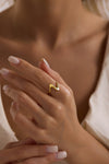 Akışkan formuyla dikkat çeken Riva Yüzük, 925 ayar gümüş üzeri altın kaplama olarak üretilmiştir. Zarif kıvrımıyla parmakta doğal bir hareket hissi yaratır; gündüzden geceye uyum sağlar.