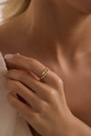Kıvrımlı formu ve parlak taş detaylarıyla Serpentina Yüzük, yılanın zarif ve güçlü siluetinden ilham alır. 925 ayar gümüş üzerine 14 ayar altın kaplama ile tasarlanan bu yüzük, parmaklarda modern ve mistik bir ışıltı yaratır. Günlük stilinize ya da özel davetlerinize kolayca uyum sağlar.