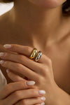 Modern zarafetin en akıcı hali. Neo Curve Ring, bombeli formu ve pürüzsüz yüzeyiyle ışığı kusursuzca yansıtır. Minimal tasarımıyla sade şıklığın simgesi olurken, altın ve gümüş tonlarıyla her stile uyum sağlar.