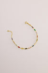 Baget Coloré Bileklik, zarif 14 ayar altın kaplama üzerine sıralanmış çok renkli baget kesim zirkon taşlarıyla stilinize ışıltı ve enerji katıyor. İnce ve ayarlanabilir yapısıyla tek başına göz alıcı olduğu kadar, katmanlı kullanımda da benzersiz bir dokunuş sunar.